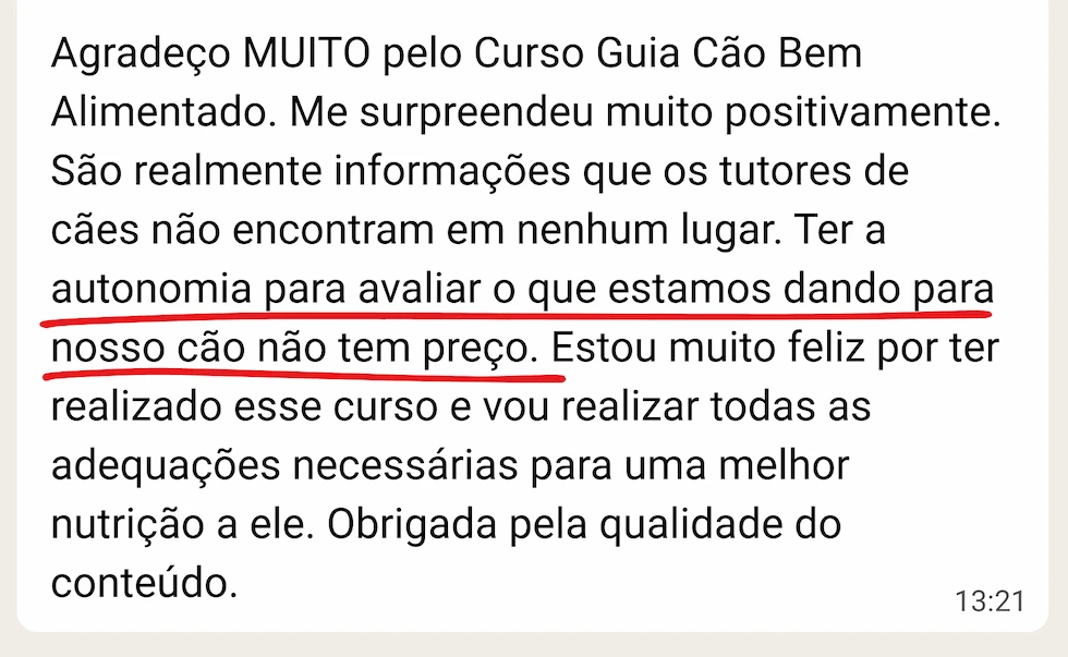 Você terá acesso vitalício, e sempre que alguma aula for atualizada ou um novo conteúdo for postado no Guia Cão Bem Alimentado, você terá o acesso.